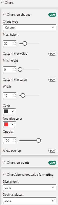 Allow overlap - When enabled, all charts are displayed on the map, even if they overlap. When disabled, overlapping charts are hidden to maintain a clear and uncluttered view.