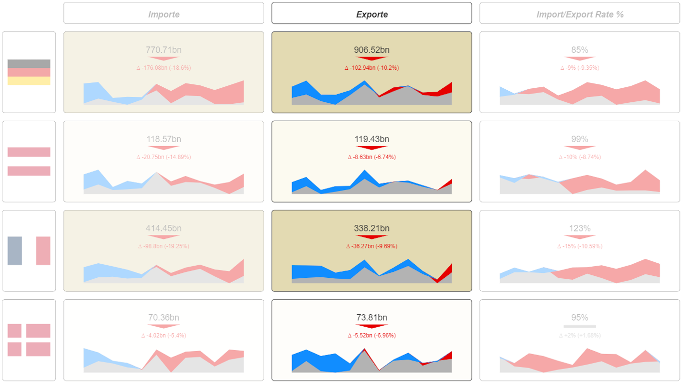 - Individuelle Formatierung (Zahlenformat, Indikatorrichtung, Anzeigeeinheit) für bestimmte Zeilen oder Spalten