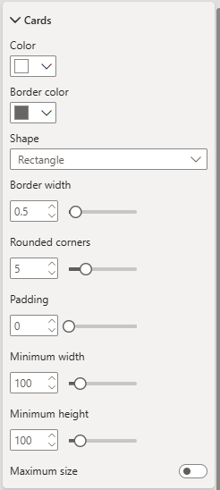 Maximum Size – Enables setting maximum dimensions (width and height) for cards. Cards expand to fill available space, but only up to the defined maximum size.