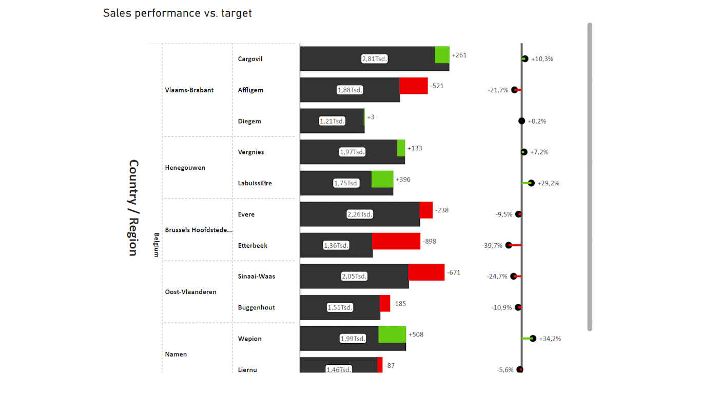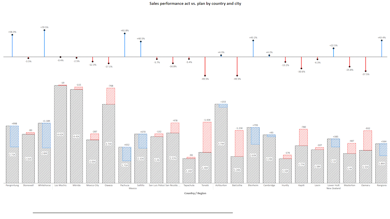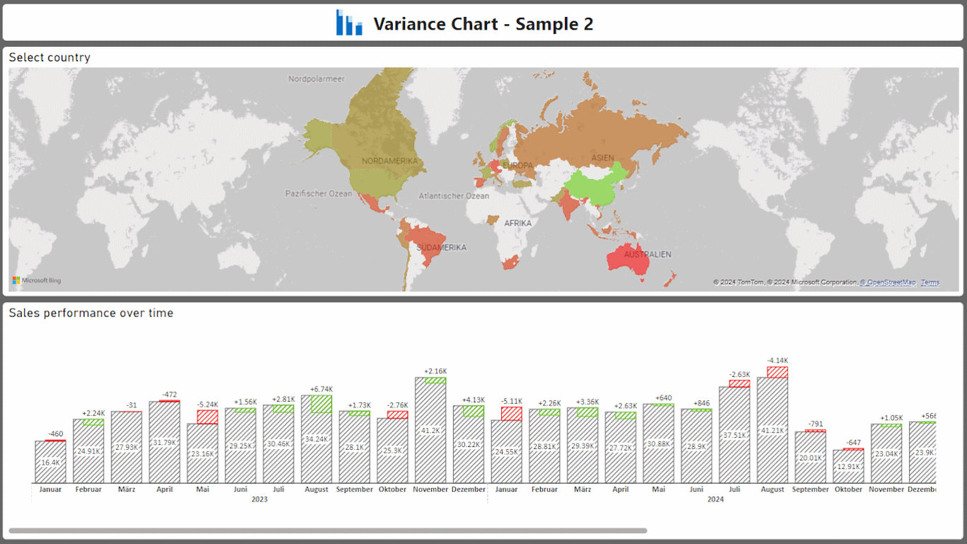 Variance Chart is a powerful custom visual for Microsoft Power BI that enables you to create professional, IBCS®-compliant column and bar charts. It clearly highlights the difference between two measures—such as actual vs. target—using distinct colored areas, making variances easy to spot and interpret at a glance.