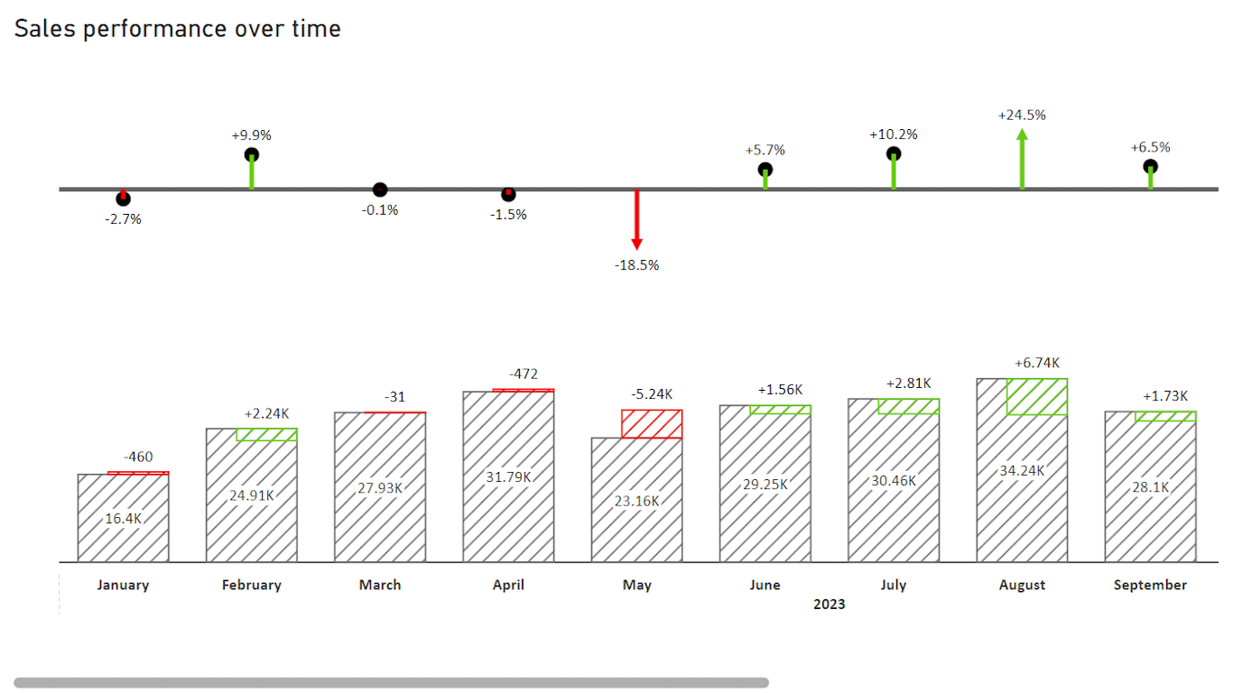 Ideal for business reporting and financial dashboards, Variance Chart also supports: