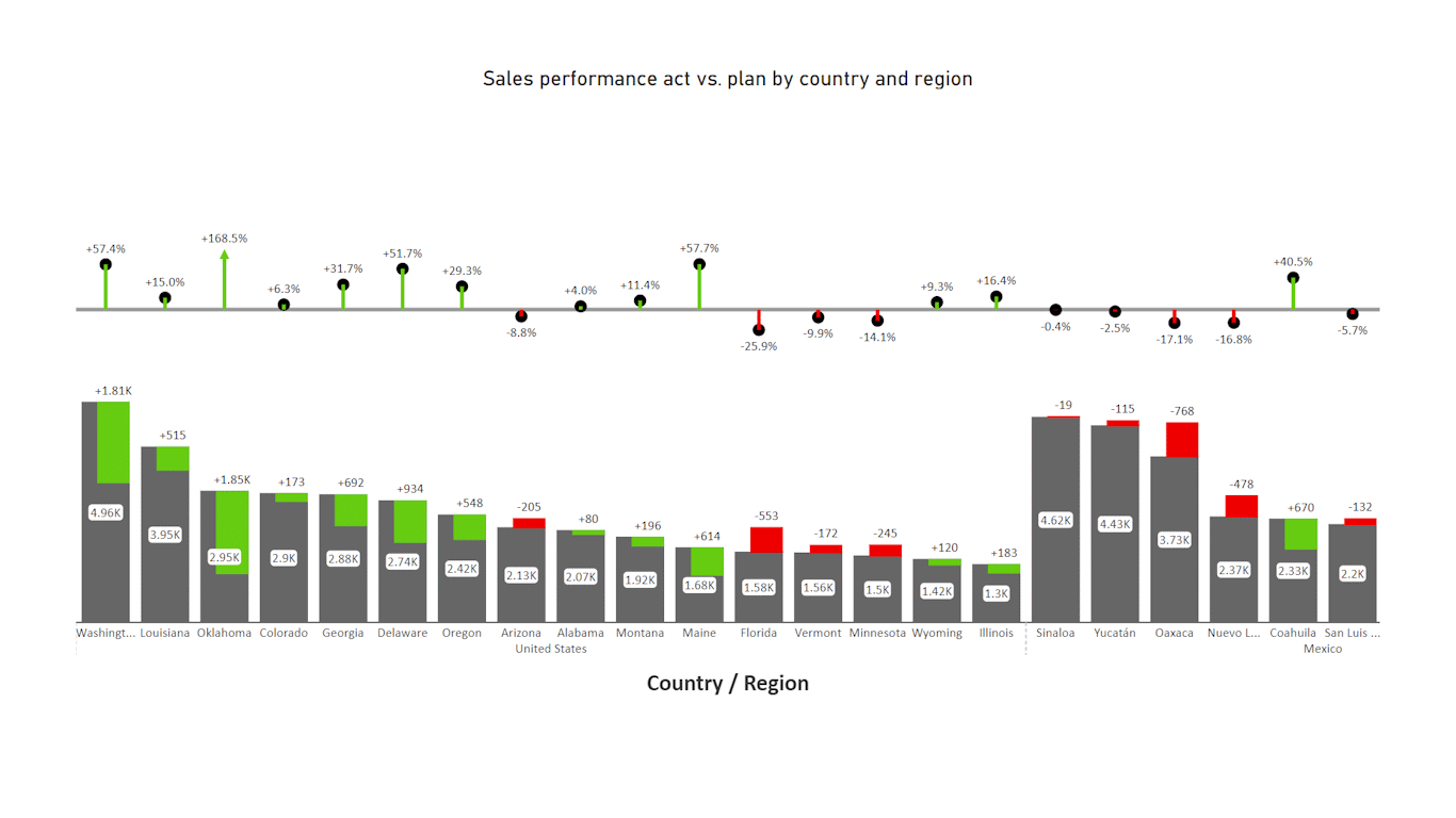 Built in accordance with the International Business Communication Standards (IBCS®), Variance Chart supports advanced features like: